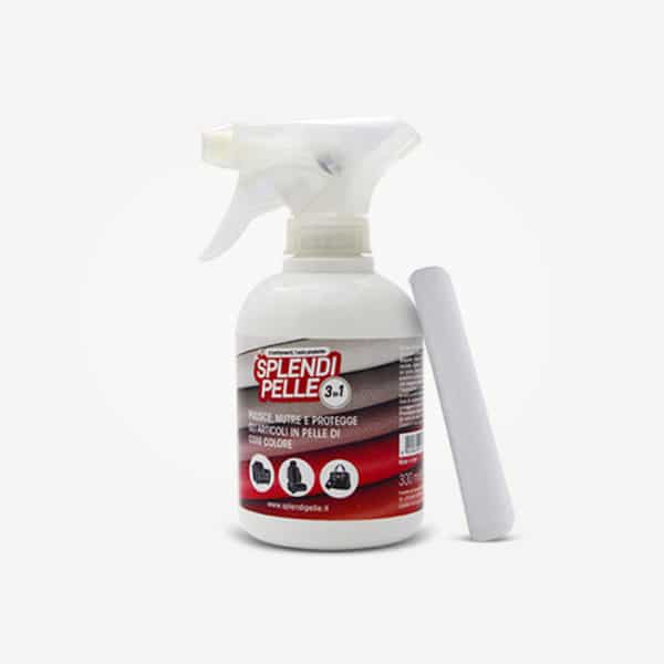 Splendipelle ® 3 in 1 è il trattamento unico per articoli in pelle (divani, interni auto, giacche, scarpe, borse). La formulazione innovativa garantisce un completo, semplice e veloce ciclo di cura in un solo gesto, riunendo le tre azioni fondamentali per una corretta manutenzione degli articoli in pelle: 1) pulisce delicatamente per una superficie sempre fresca e profumata; 2) arricchisce e nutre la pelle mantenendo la sua naturale morbidezza; 3) protegge la pelle creando una barriera invisibile che ne agevola la successiva pulizia. Risultati eccellenti su qualunque articolo in pelle ed ecopelle, eccetto pelle scamosciata.